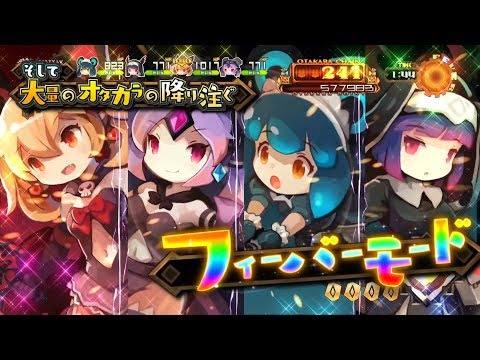 - 「フィーバーモード」:フィーバーゲージが溜まると発生。発生中は無敵で、敵やブロックから“フィーバージェム”を集められる。これを集めることで「フィーバースロット」を回すことができ、その景品によって攻撃力や防御力、金貨入手率をアップさせることが可能。