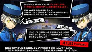 アトラスは明日10月31日に発売する『ペルソナ5 ザ・ロイヤル』について、動画・生放送配信ガイドラインを公開しました。