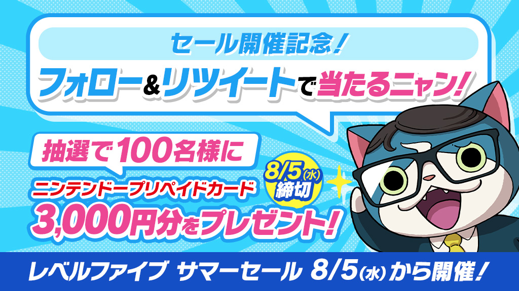 さらに、ニンテンドープリペイドカード3,000円分が抽選で100名に当たるキャンペーンも実施中です。