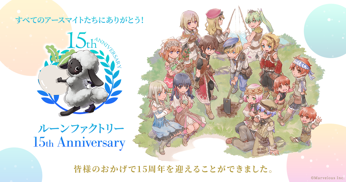 マーベラスは、本日で15周年を迎えた『ルーンファクトリー』シリーズの「15周年特設サイト」をオープンしました。