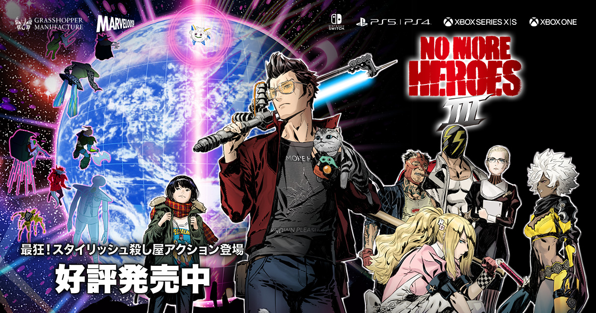 マーベラスは2021年にNintendo Switchで発売した殺し屋アクション『ノーモア★ヒーローズ3』のPS5/PS4/Xbox Series/Xbox One版を10月6日に発売すると発表しました。価格は通常版がパッケージ・DLともに6,800円、DL専売デジタルデラックス版が7,800円(いずれも税別)です。