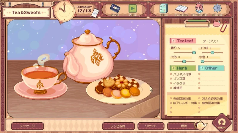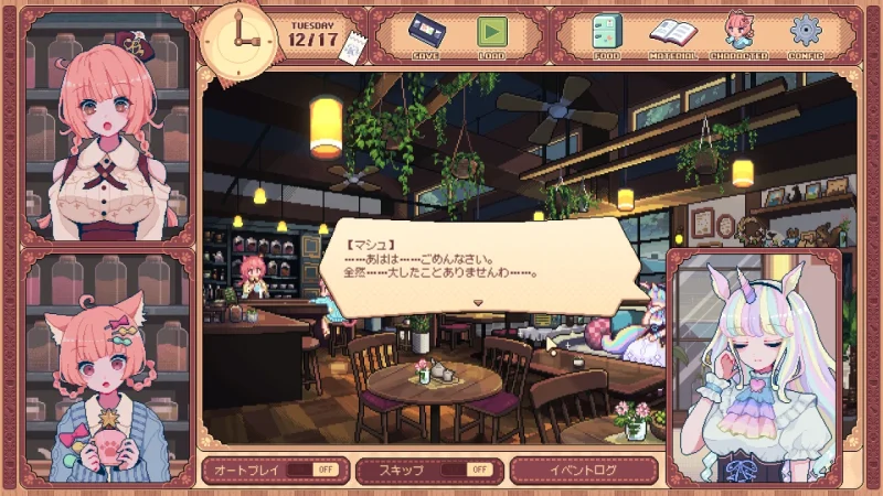 『けものティータイム』は、ケモミミのキャラクターたちが営む喫茶店を舞台に、ブレンドティーのシミュレーションとカワイイ物語(KAWAII物語)を体験できるアドベンチャーゲームです。ASMR要素が盛り込まれており、癒やしや没入感を重視したプレイ体験が特徴です。