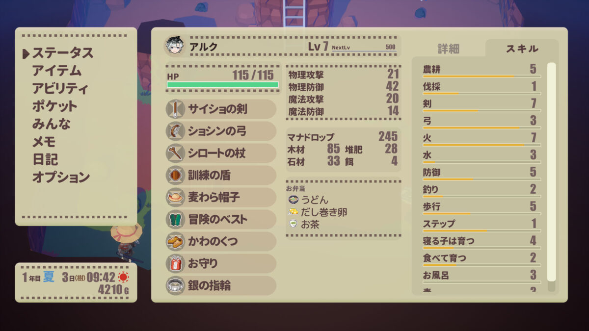 本作の最大の特徴は、「クリアした後の世界に住み続けたい」というプレイヤーの願いを叶えることをコンセプトに掲げている点です。一般的なゲームでは物語のエンディングと共に進行が一段落しますが、本作ではストーリーをクリアした後も、そのままファーニア村の住人として暮らしを重ねていくことができます。プレイヤーは自身の名前以外の記憶を失った主人公として村での生活を始め、謎の少女に食事の大切さを伝えながら、この世界で新たな人生を歩んでいきます。